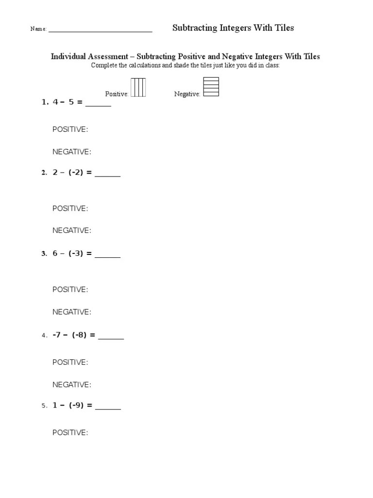 Browse subtracting negative integers resources on teachers pay teachers, a marketplace trusted by millions of teachers for original . In this module, you can study how to add and subtract integers. The four operations with negative numbers ks3 walkthrough worksheet. Adding and subtracting negative numbers dice game. Teach students about comparing, ordering, adding, subtracting, multiplying, and dividing basic integers.